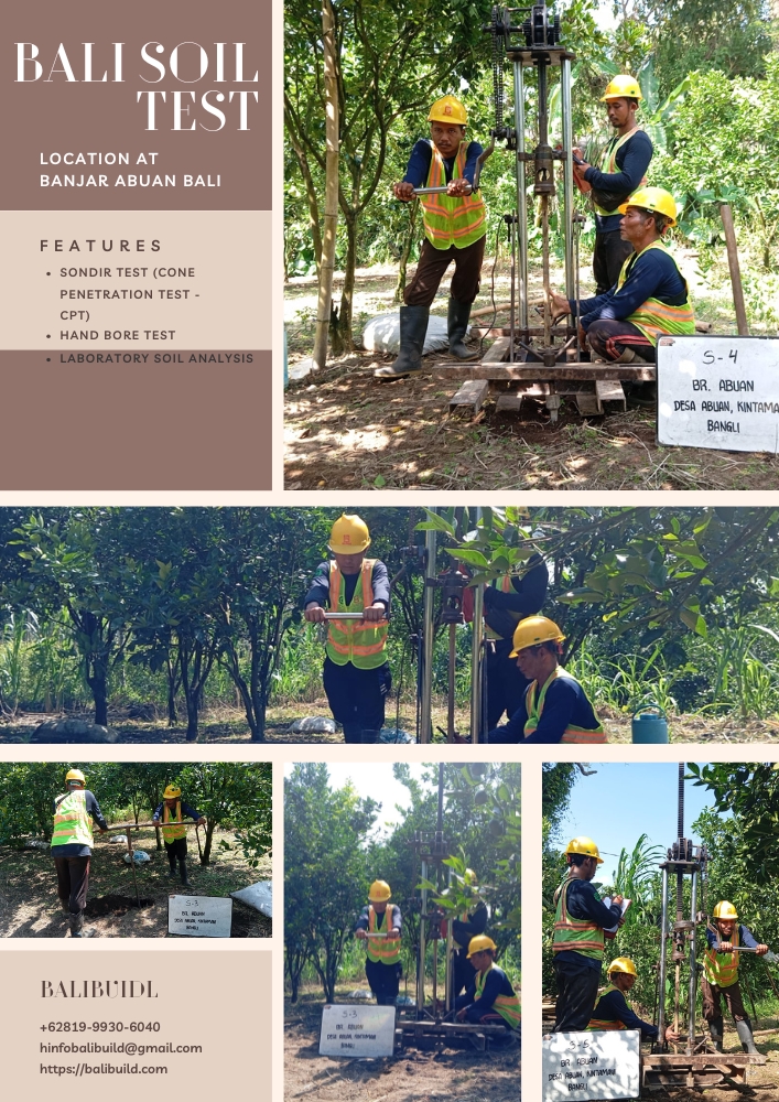 Located in Banjar Abuan, Bali, our soil testing services provide comprehensive ground analysis to ensure the success of your construction projects. Understanding the soil composition and stability is crucial for a safe and durable building foundation.